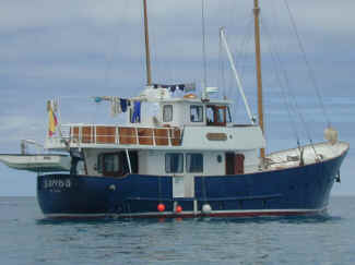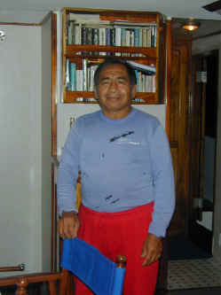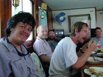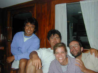 Pepe (our captain), Hernand, Kelly and Jan chillin in the salon of the Samba. Hey, who's driving the boat?
