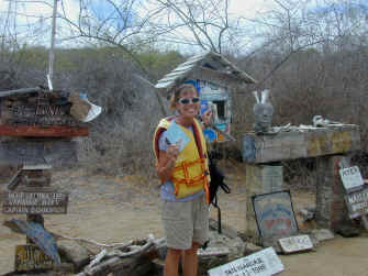 We awoke our second morning on the Samba again to the 7:00 a.m. breakfast bell...which has become music to our ears. We took our panga out to Isla Floreana and witnessed for the first time green beach sand. We also saw the damage that the feral goats had done to the island's vegetation; essentially eating it all, leaving a somewhat stark and barren landscape. After a snorkel and another delicious lunch, we visited the oldest post office on the islands. Originally established by the pirates, this mail system operates on the good Samaritan principle. People leave their letters or postcards without postage in a small barrel. When others visit, they look at the addresses. If one is addressed to a location close to their home or destination, tradition obligates them to personally deliver the letter to the addressee. This system is responsible for many marriages of people meeting each other through this odd system. We dropped off two postcards and picked up two...hoping that we do not lose them before we return home to Atlanta for a short time in December. Following our visit to Isla Floreana, we set off on our 11 hour journey to Isla Isabela, the largest of the Galápagos Islands, located on the western edge of the archipelago.