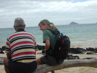 Kelly and Fritz enjoy a moment on a Floreana beach. As usual, Fritz is making Kelly laugh. Fritz is 78 years of age going on 30.