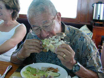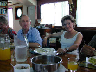 Once again, we are enjoying a large, delicious lunch prepared by Augustine. Here is Rich (USA), Edo (The Netherlands) and Frank (Germany).